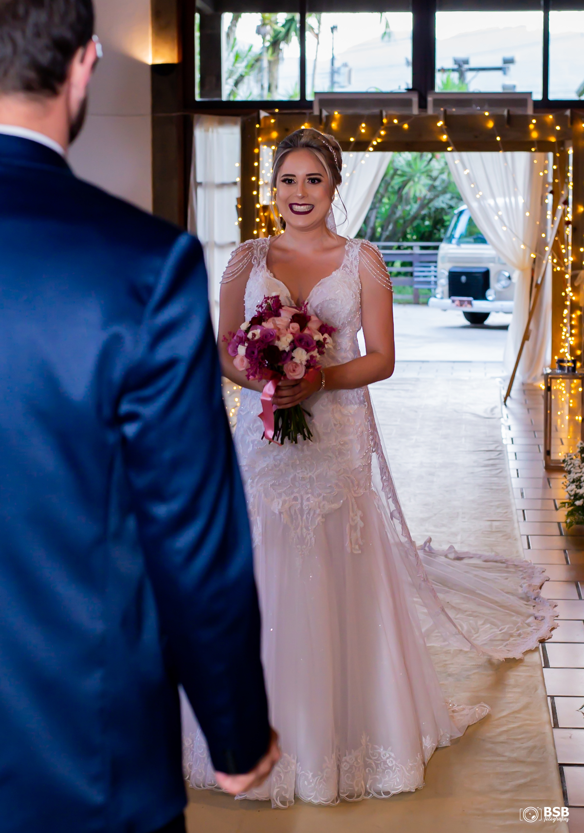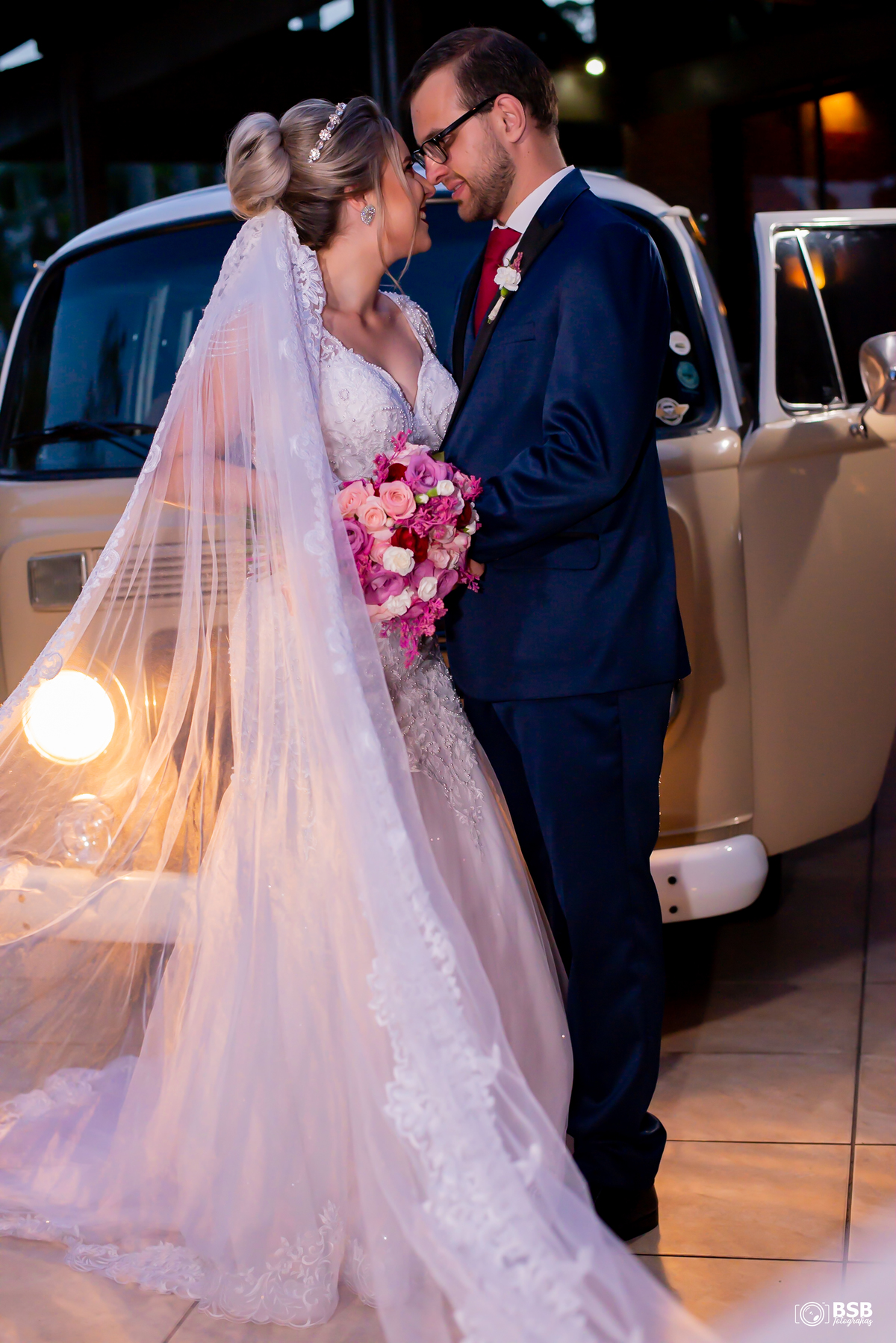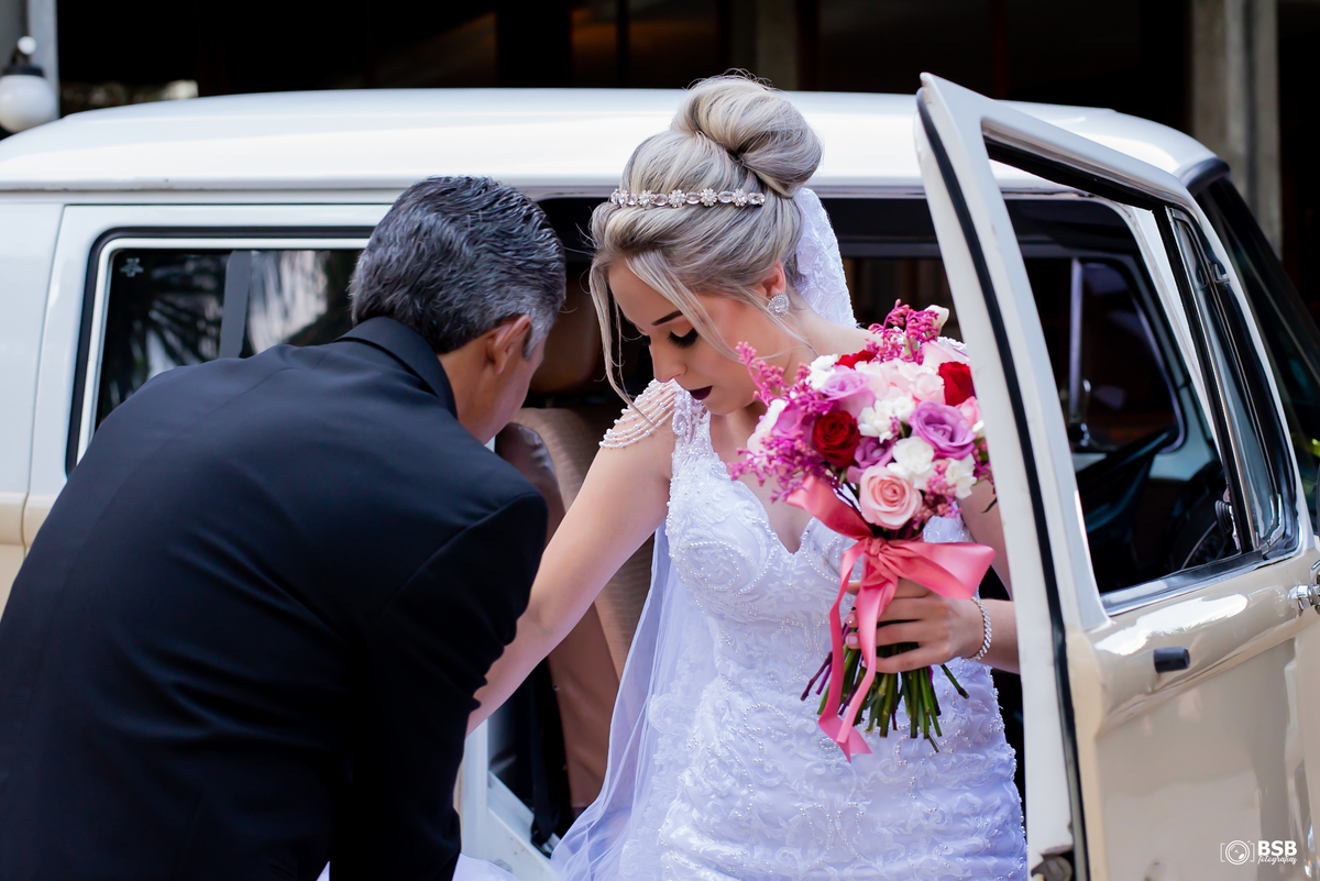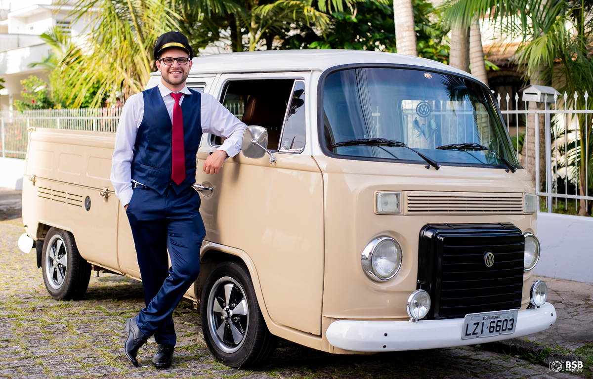 Quem conhece o casal sabe que eles tem uma paixão pela sua Kombi e claro que a noiva chegou nela e depois fizemos muitos registros do carro dos noivos.