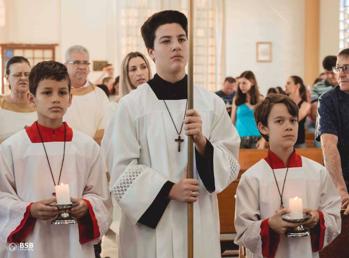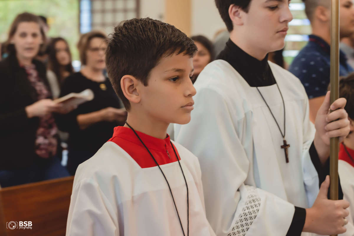 Além de ser o batizado do seu príncipe e pimpolho Joaquim que deu muitos sorrisos fofo, o mano Eduardo serviu na igreja, sendo coroinha.